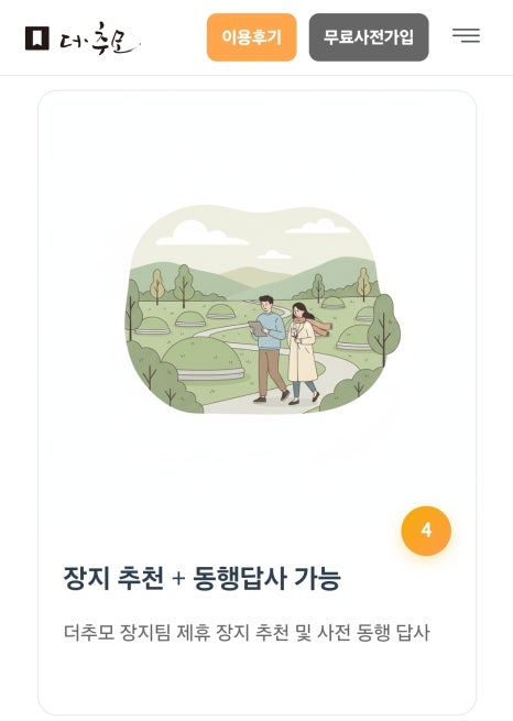 장지 추천 및 동행 답사: 제휴 장지팀이 직접 추천 및 동행 지원