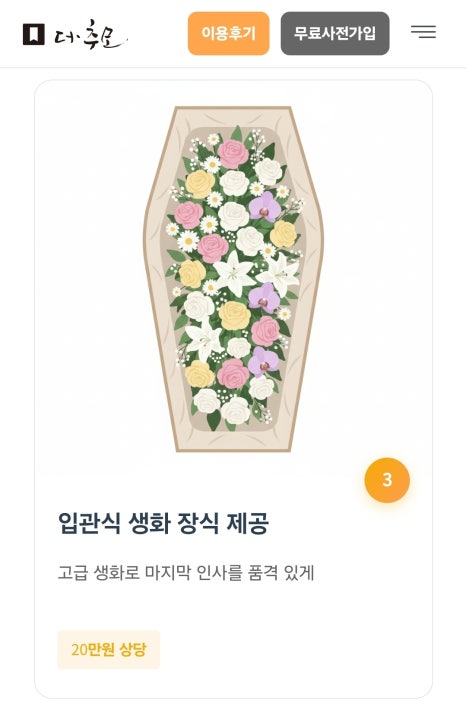 오늘은 더추모상조 무료 사전가입 혜택을 세부 항목별로 좀 더 알아보는 시간을 가져보겠습니다.