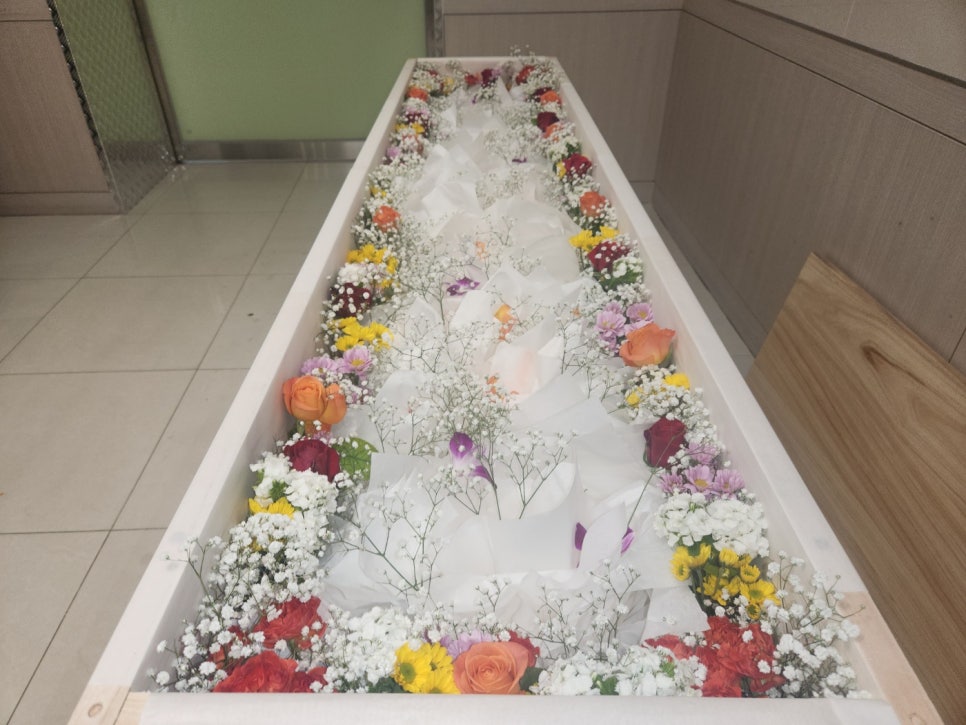 관에는 가족분들이 쓴 편지와 함께 어머님께서 키우시던 화분의 꽃 한 송이도 함께 넣어드렸습니다. “어머니께서 꽃을 정말 좋아하셨어요”라며 손수 키우신 국화꽃을 가져오신 모습이 감동적이었습니다.