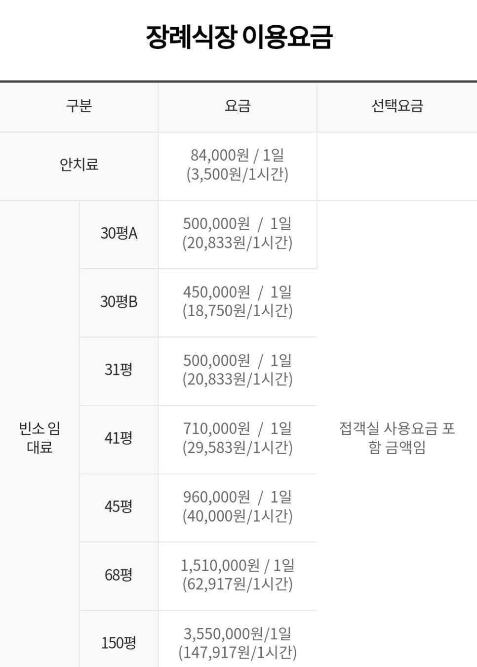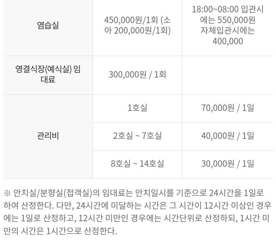 – 중형 빈소 6개: 80~150명 수용 가능
